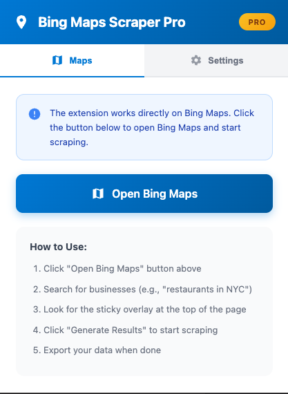 Bing Maps Scraper Pro Extension – Unlimited Business Data Export